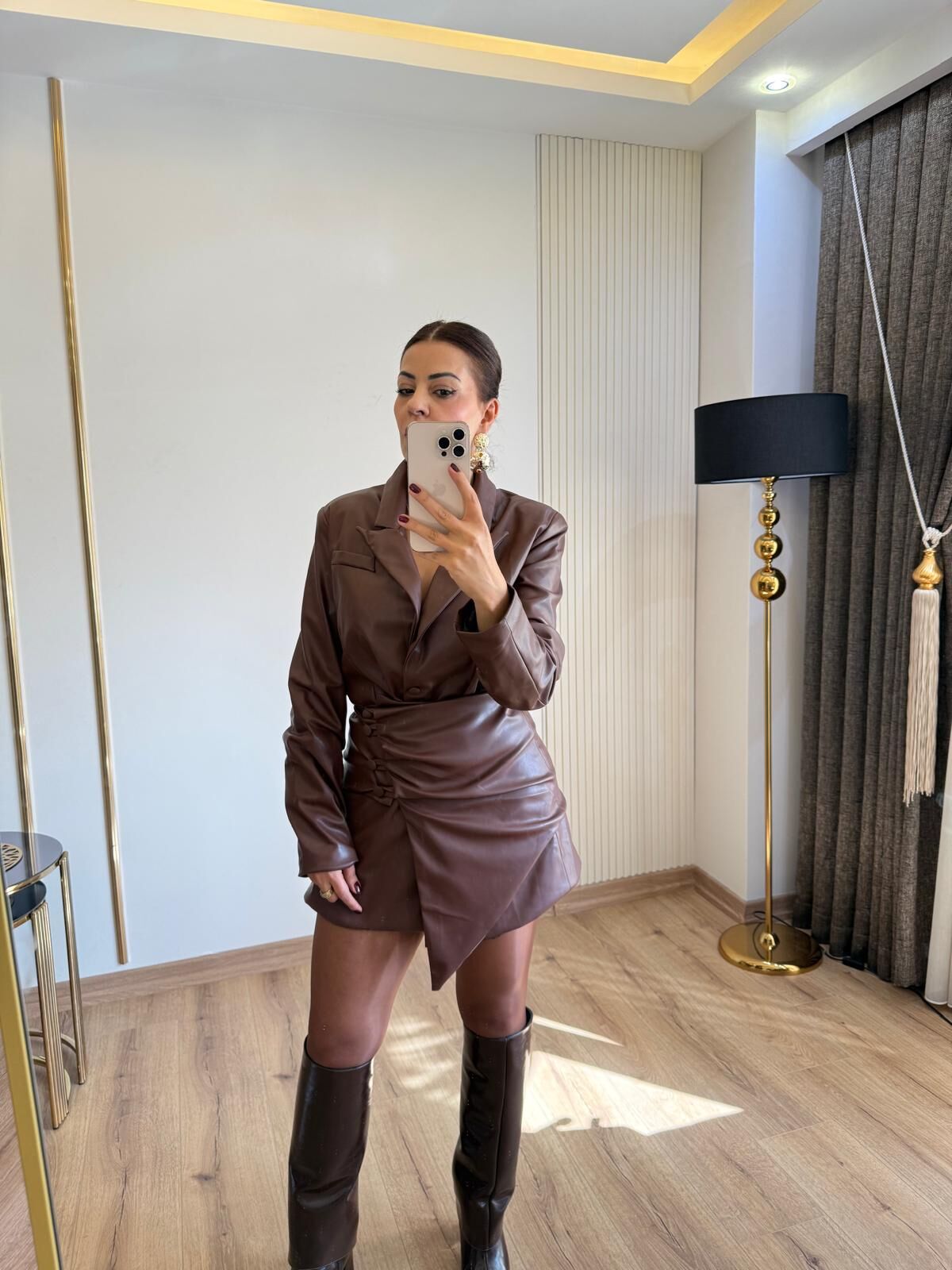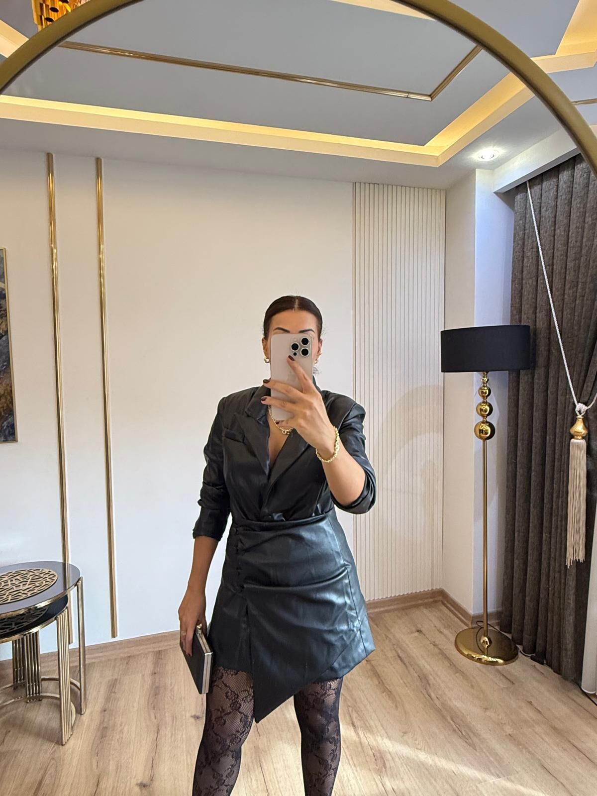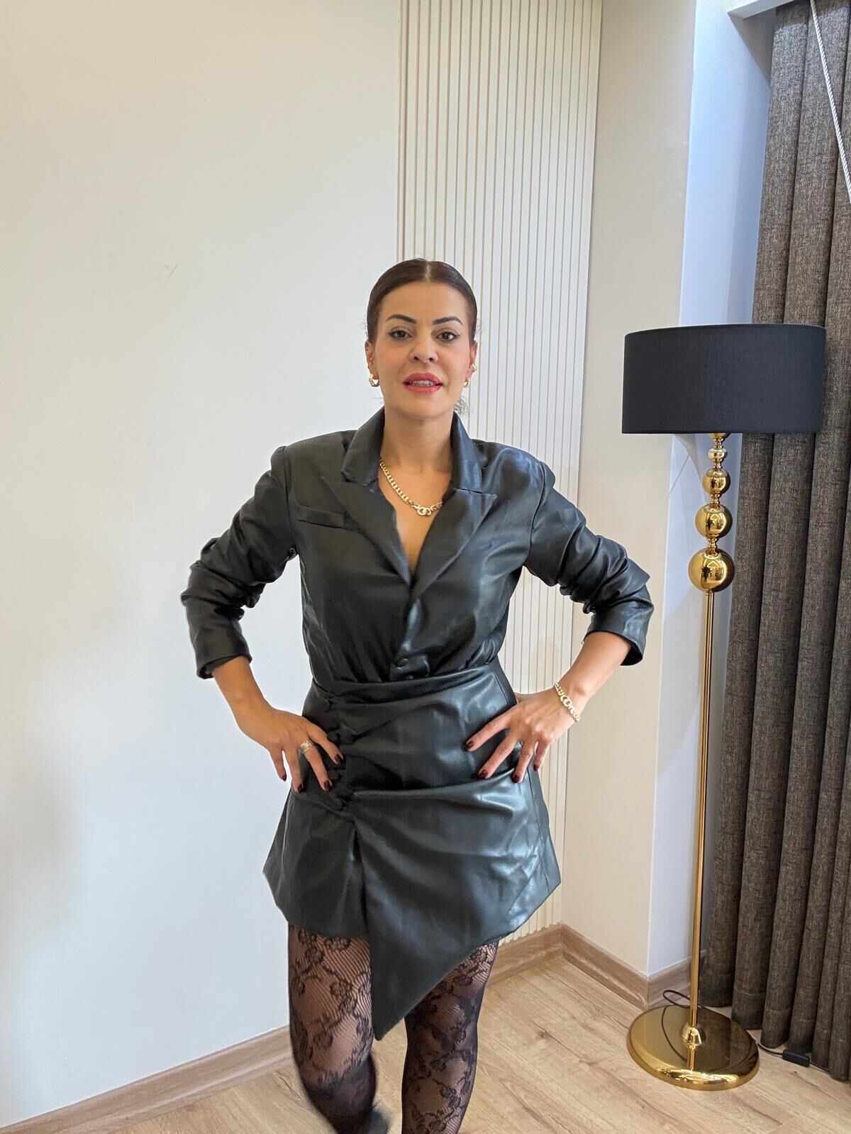 Luna siyah deri elbise