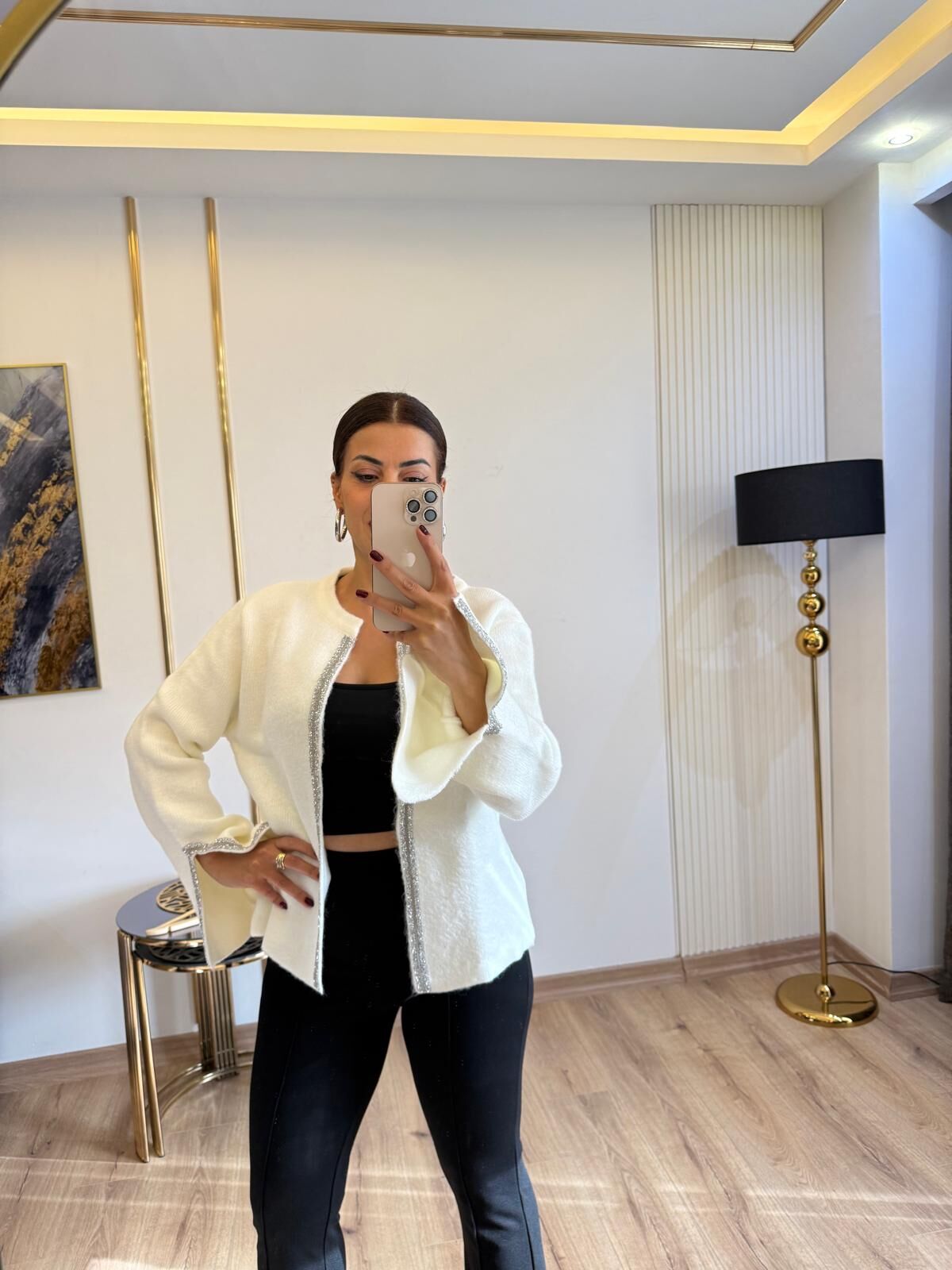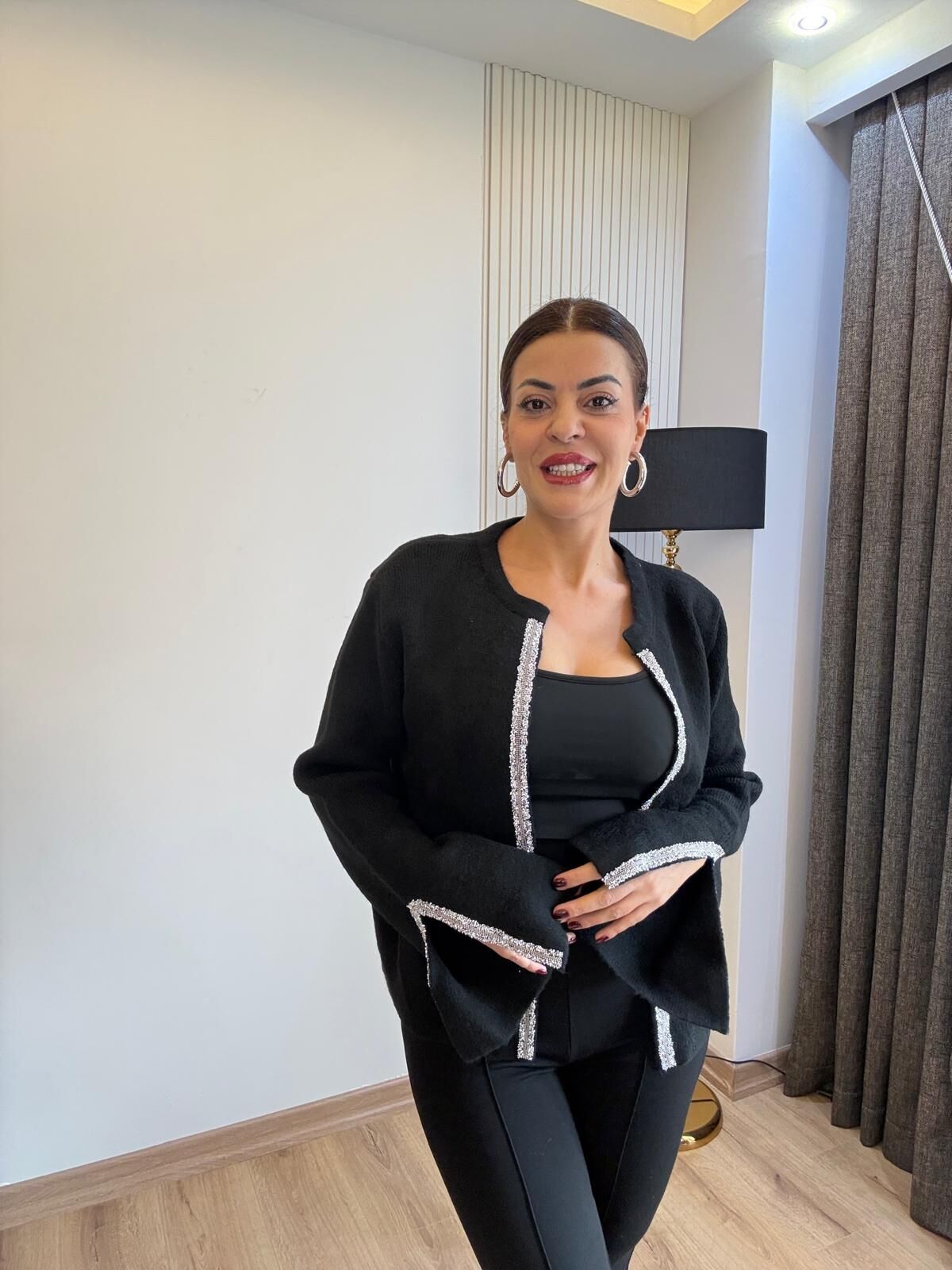 Premium taş işlemeli siyah hırka