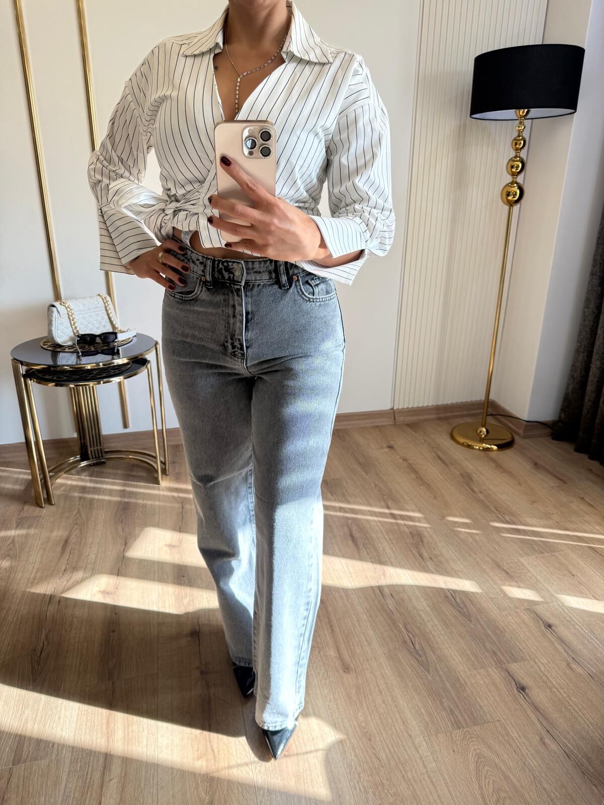 Wide Leg gri kot pantolon